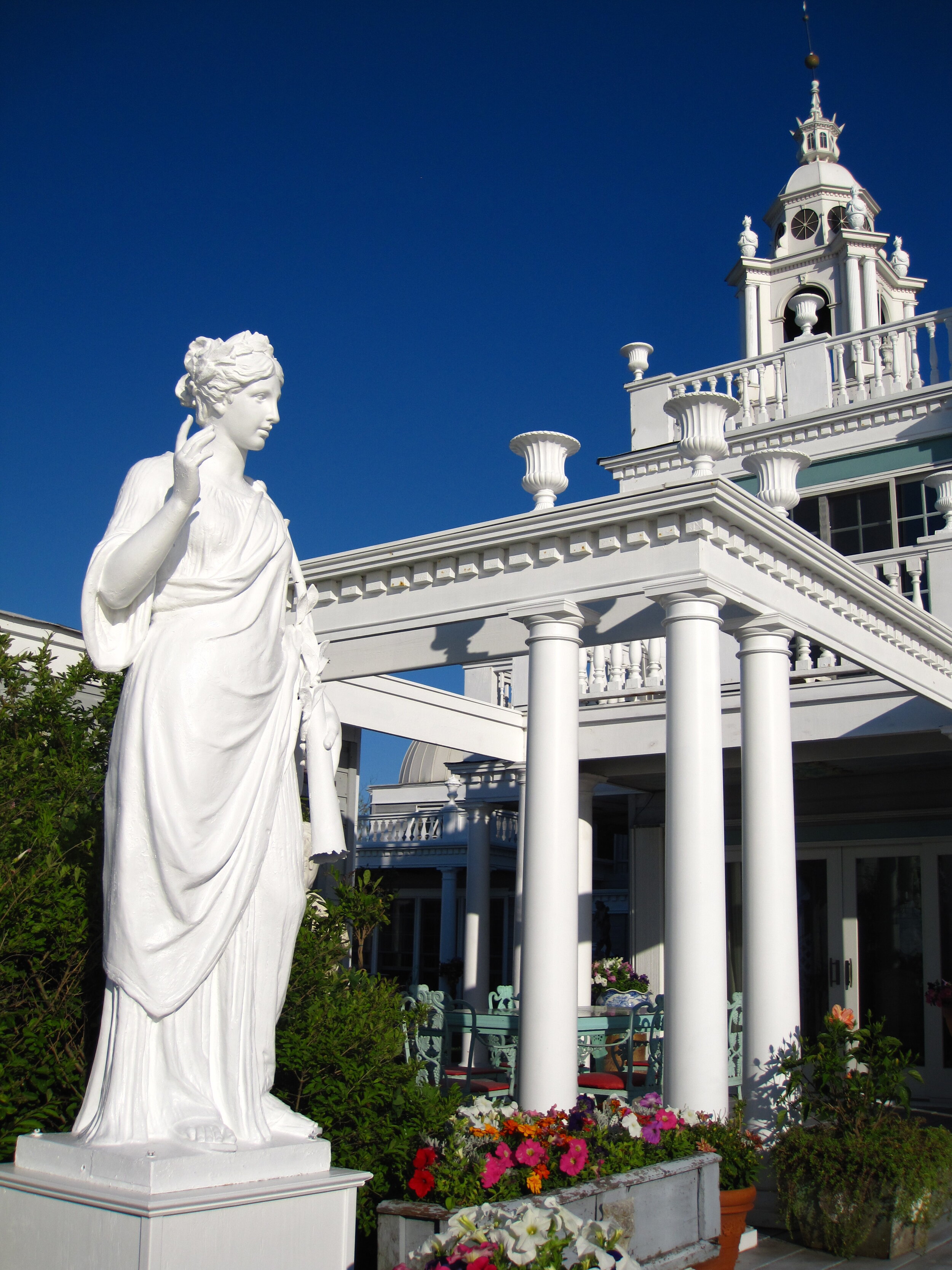 In the style of a Venetian Palace - with terraces, towers, domes, statuary, antiques and fountains - and a roof-top terrace and bay front deck that afford spectacular views of the Great South Bay, the ocean, and towns. Sunsets are magnificent. Featuring sun decks, swimming pool, hot tub, a gym, high-speed wireless Internet connection over the entire facility (so you can work pool-side), and a community movie room. We supply ice, coffee, and refrigerators.