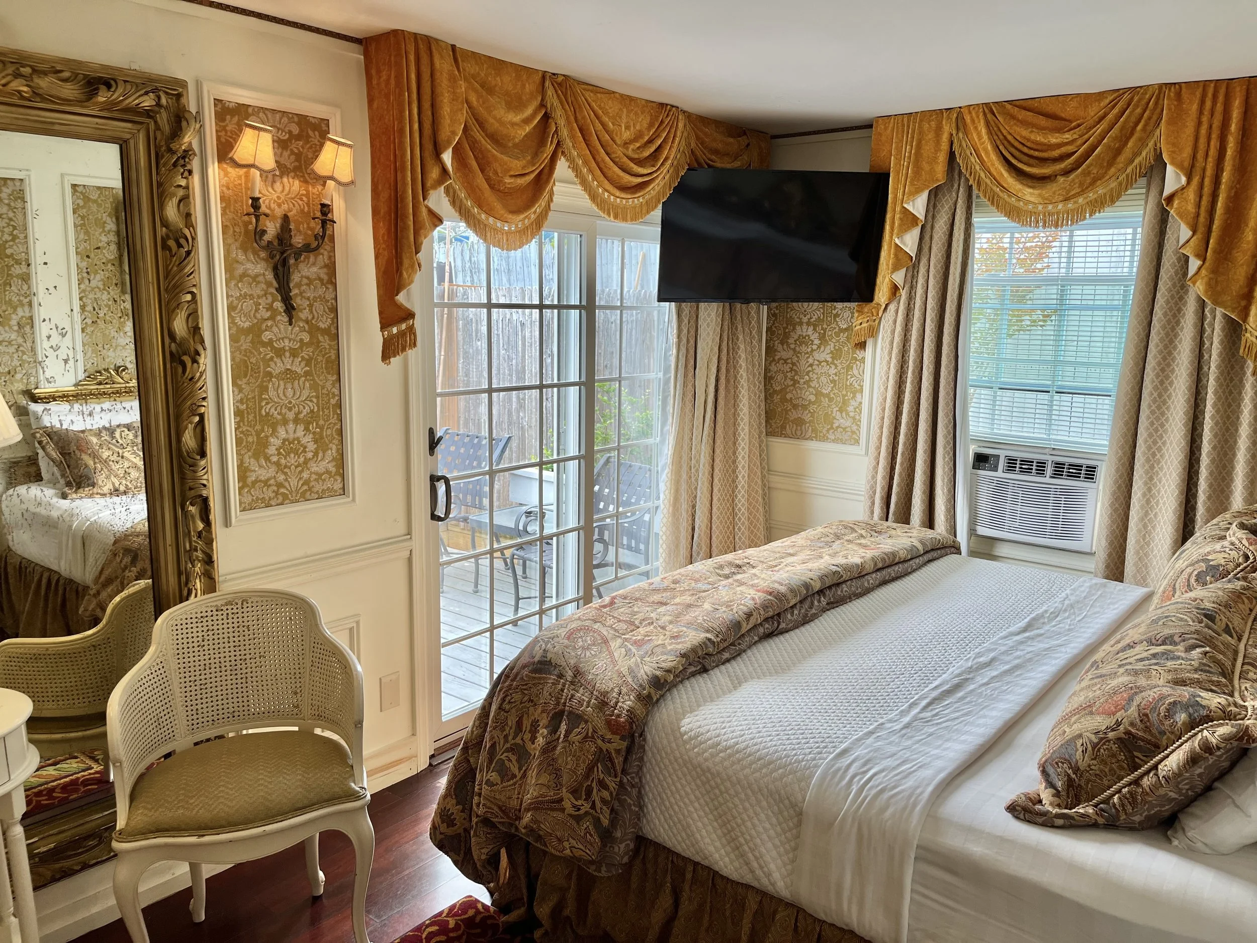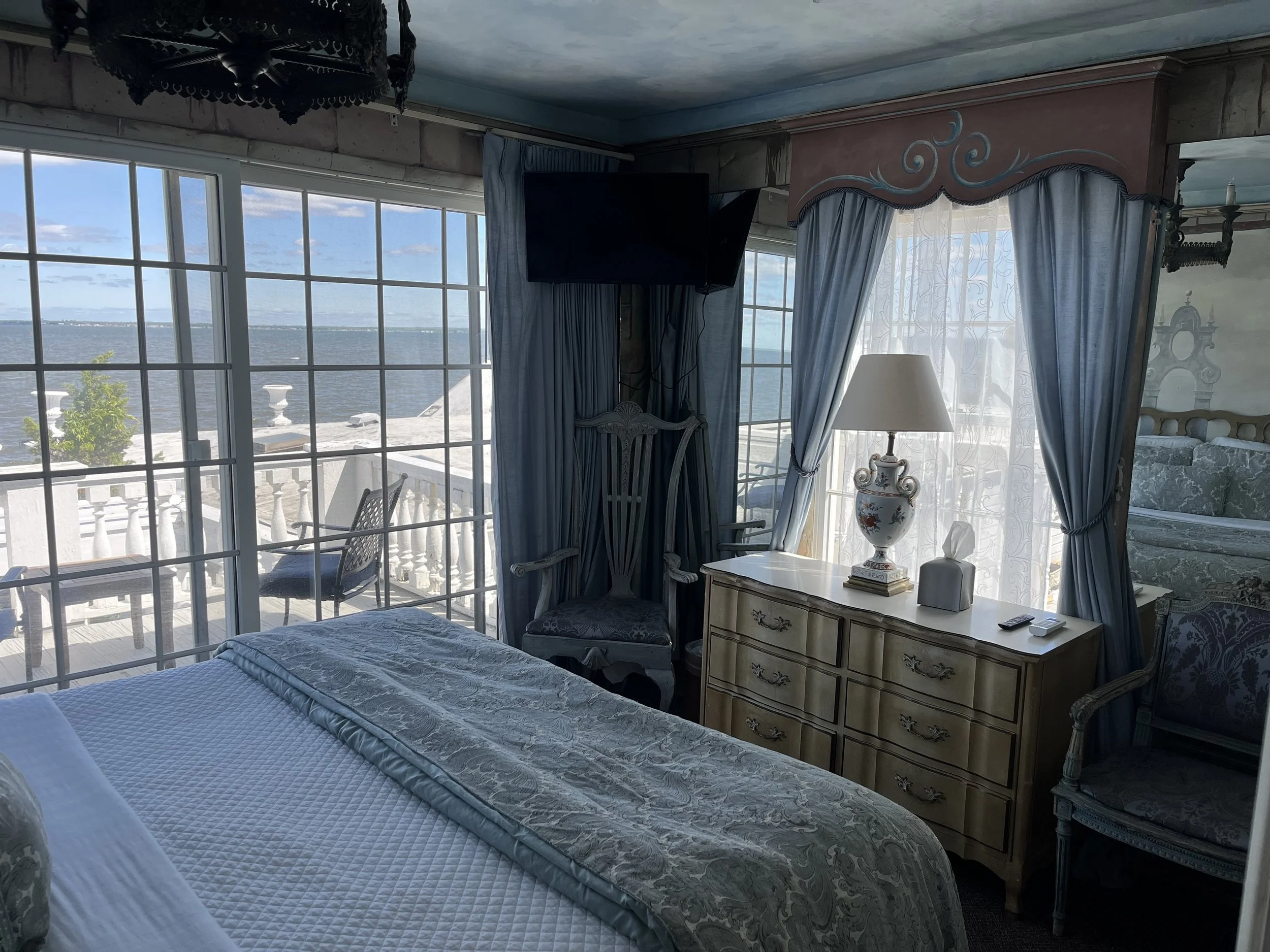 Rooms & RatesClick each picture to explore rooms. Luxury King Waterfront rooms with private bathroom, terrace, Smart TV, I-pod speakers, and refrigerator, king beds, AC/Heat Luxury Waterfront rooms with private bathroom, terrace, Smart TV, I-pod speakers, wet bar and refrigerator, queen beds, AC/Heat Deluxe King Private bathroom, private terrace, HDTV, wet bar, refrigerator, and king sized bed, AC/Heat Deluxe Private bathroom, private terrace, HDTV, wet bar and refrigerator, and queen or full/daybed, AC/Heat Standard Private bathroom, HDTV, refrigerator, queen or full size beds, AC/Heat Economy King Shared bathroom, terrace; king size bed. Some with water views. Economy Shared bathroom, terrace; queen, full or twin sized beds. Some with water views. Basic Shared bathroom; either full or twin sized beds. Quad Private bathroom, terrace entrance; sleeps 4. Full bed and queen pull out HDTV, AC/Heat Rates variable depending on dates. Click Book Now to see current prices. Book Now